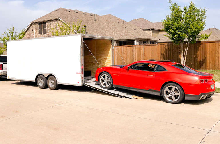An enclosed trailer option for transporting a single vehicle with enhanced safety and weather protection.